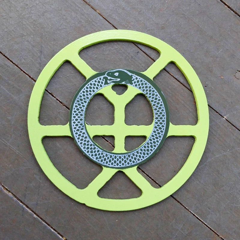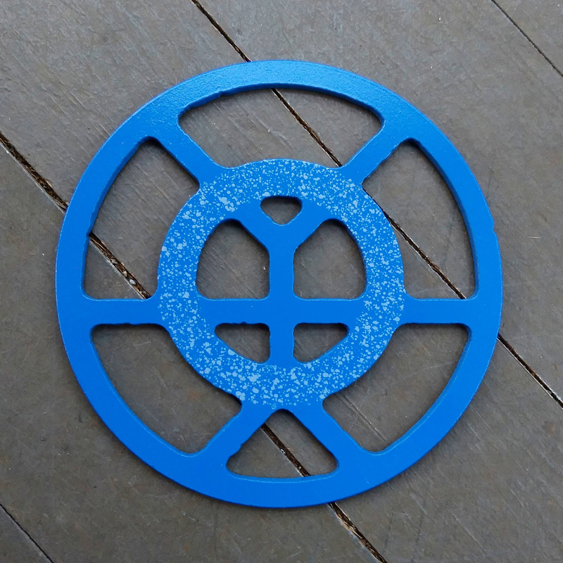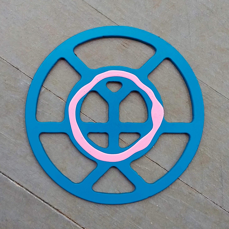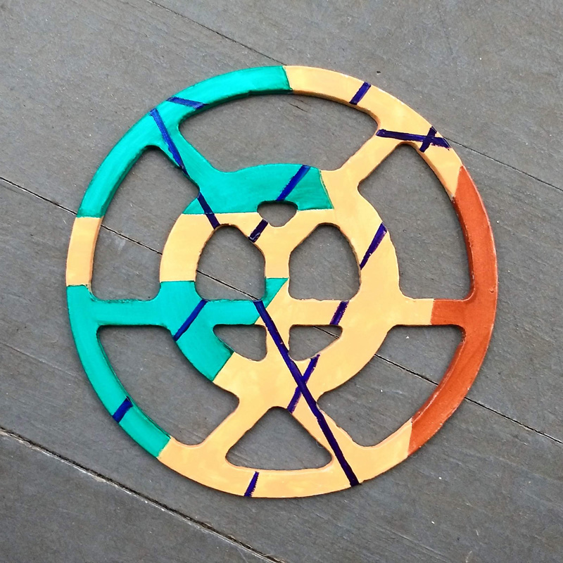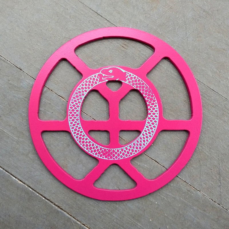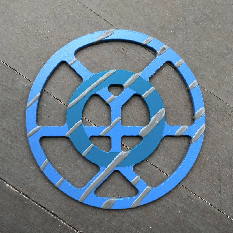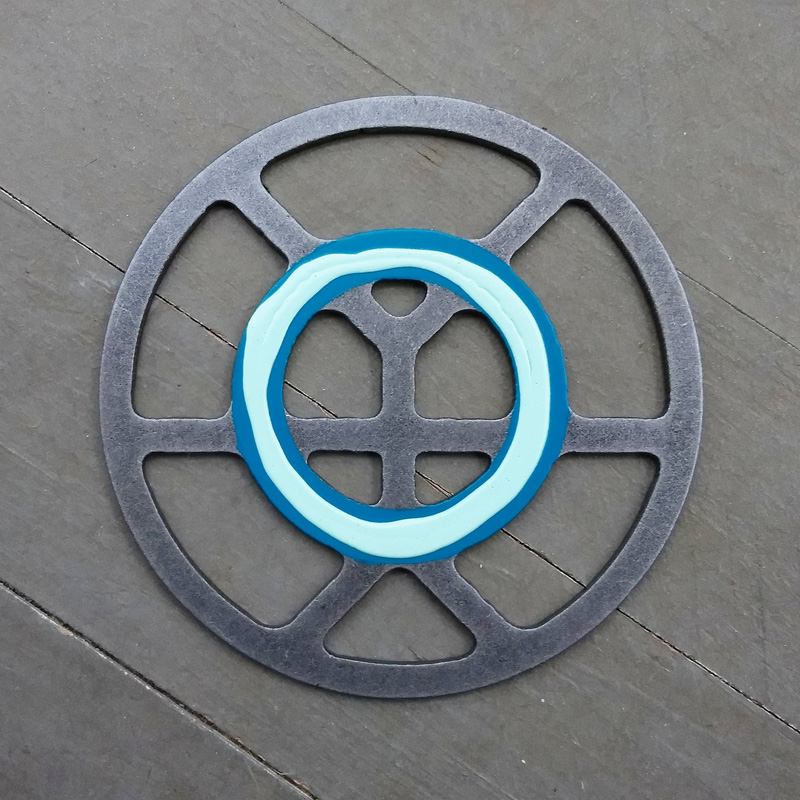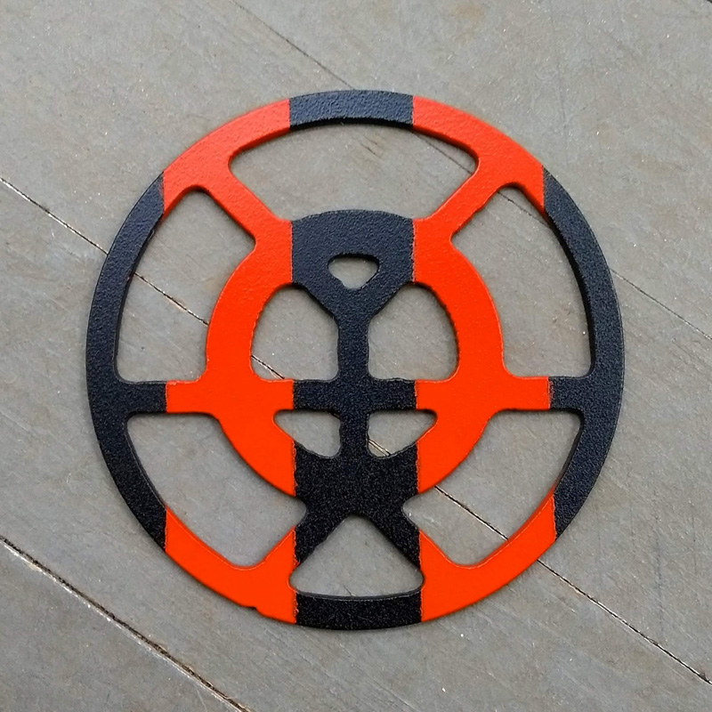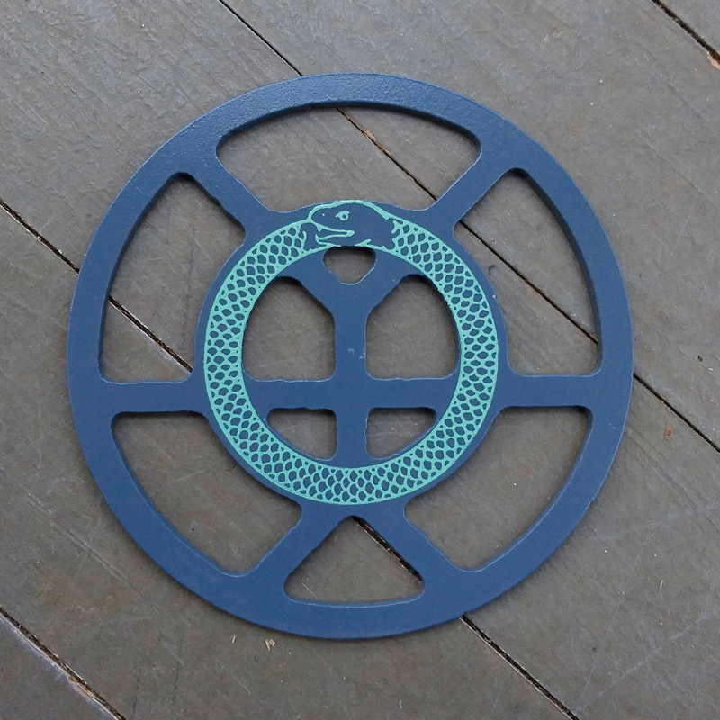 Each piece of art in this project is painted uniquely but they are all on the same 6-inch wide steel base. 2020's design is a stylized "Atl".