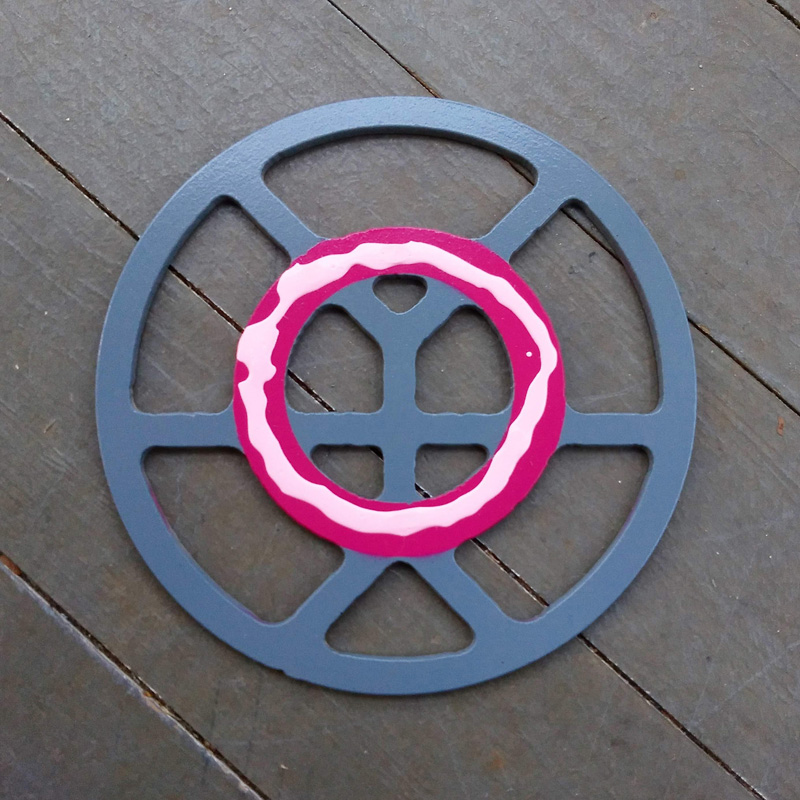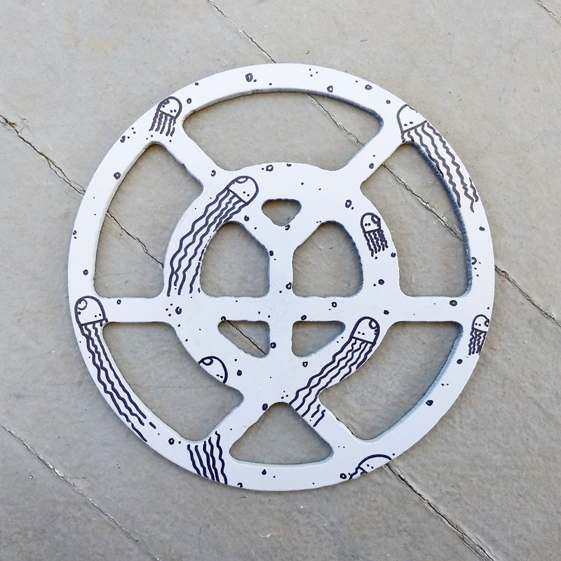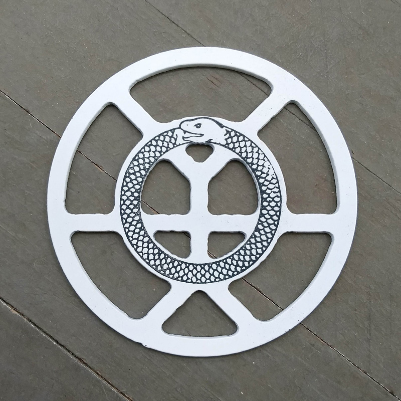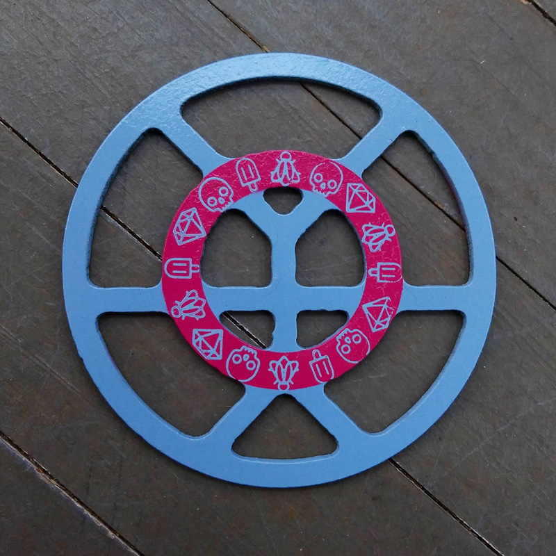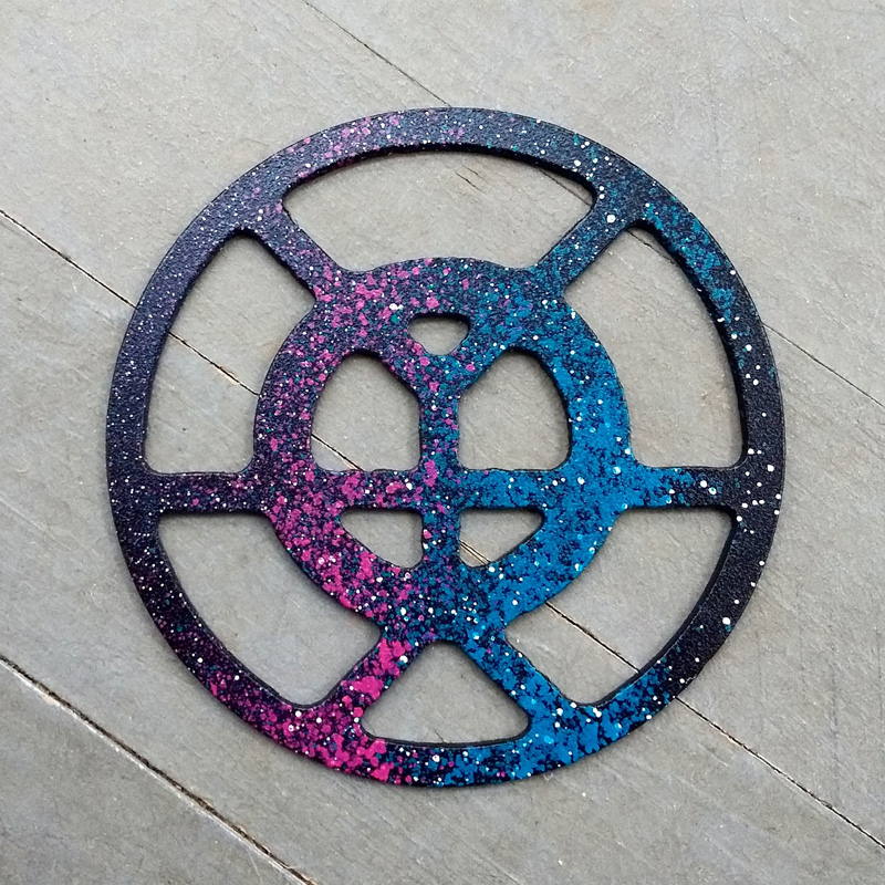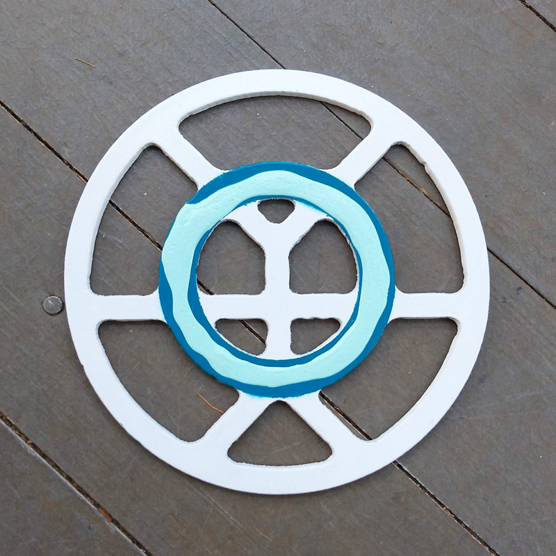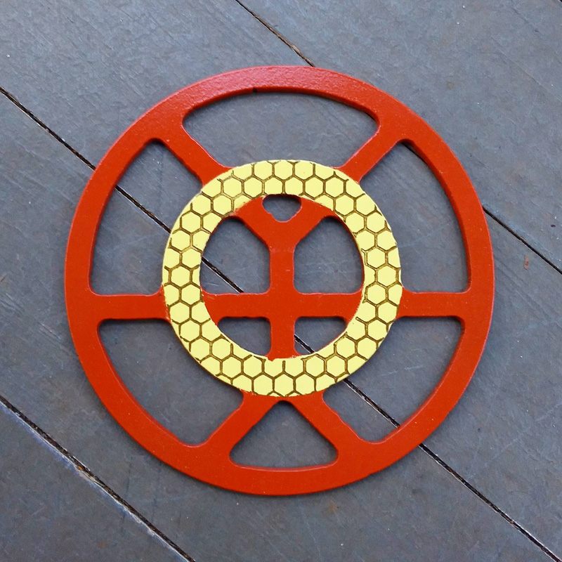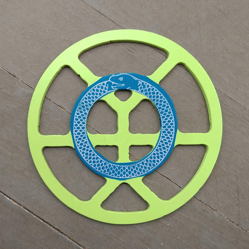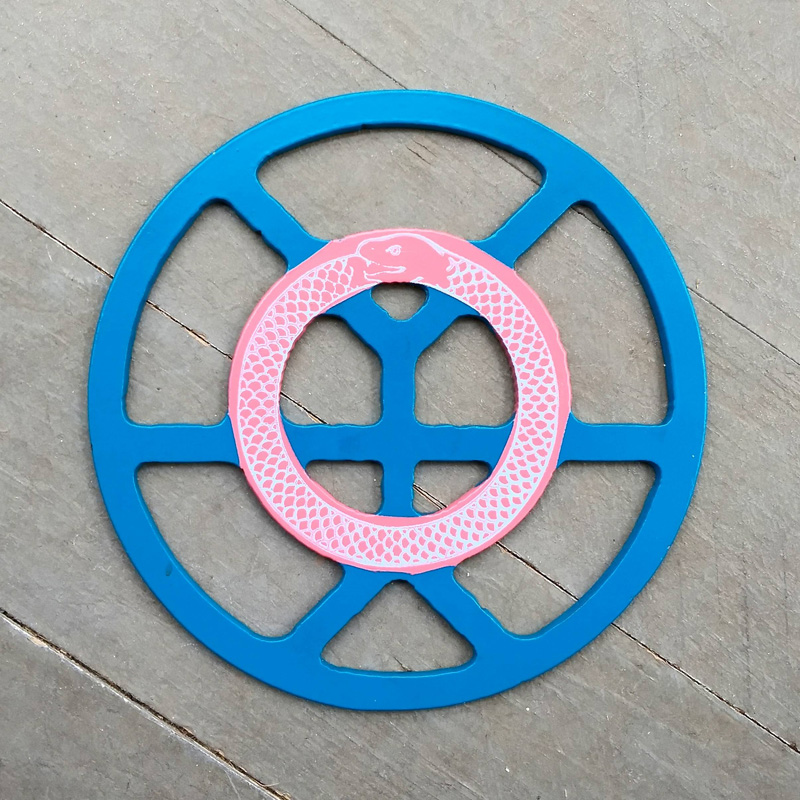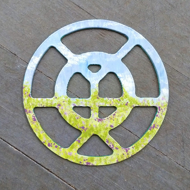 Each piece of art in this project is painted uniquely but they are all on the same 6-inch wide steel base. 2020's design is a stylized "Atl".