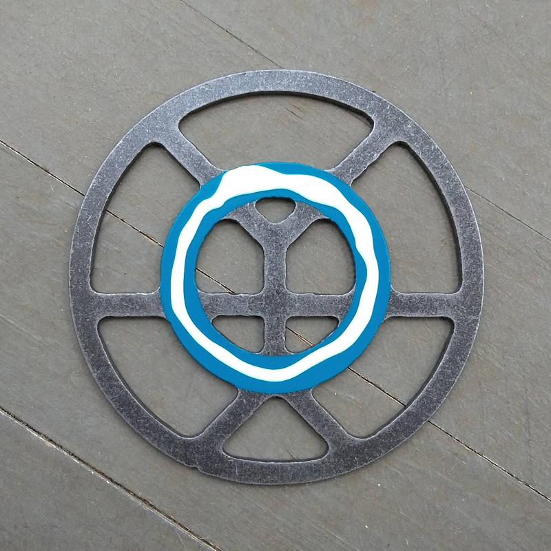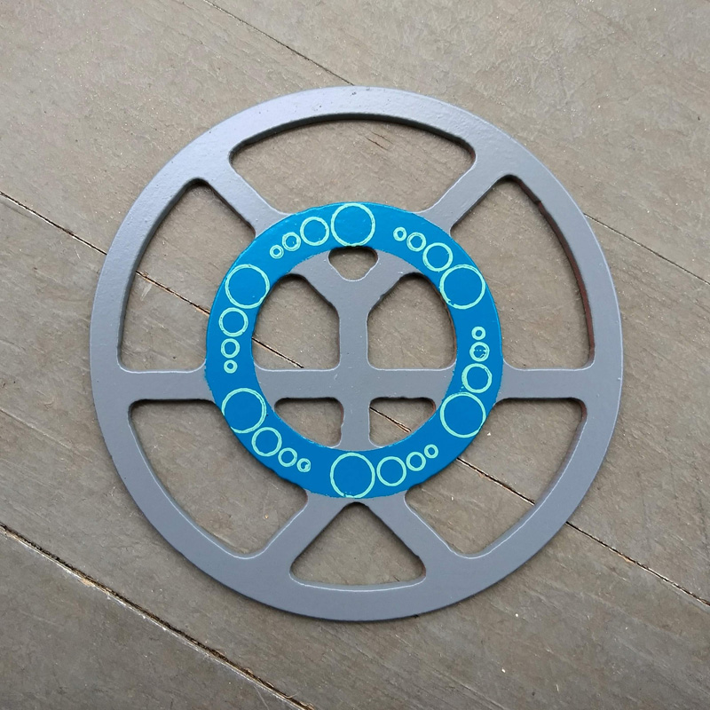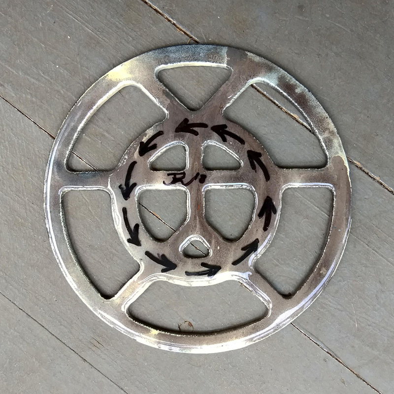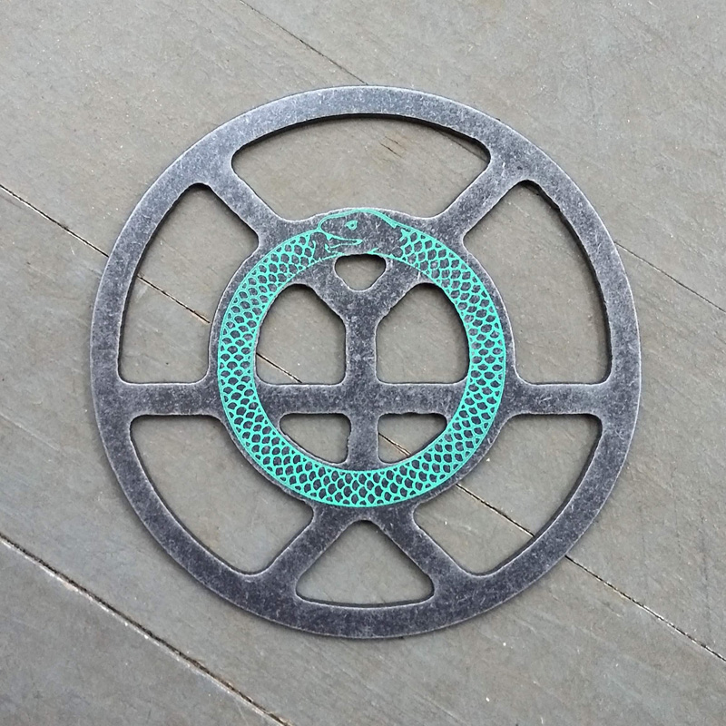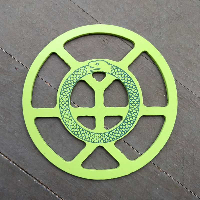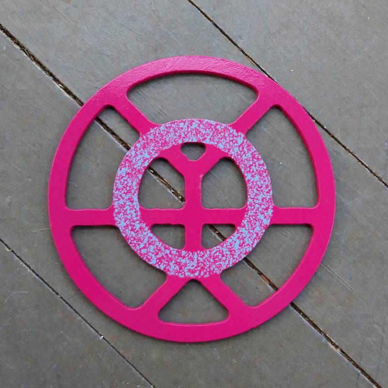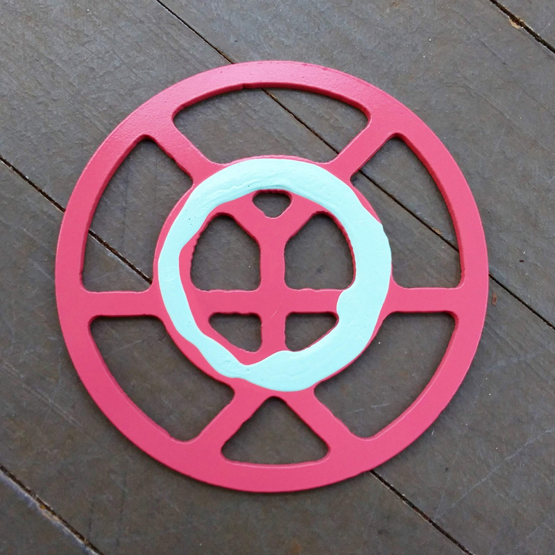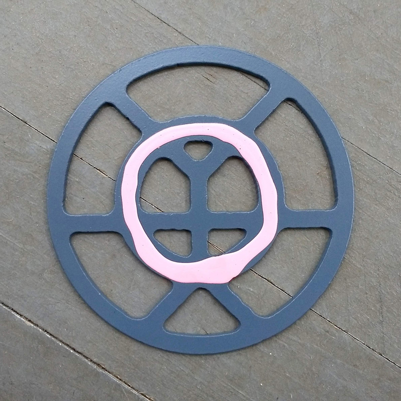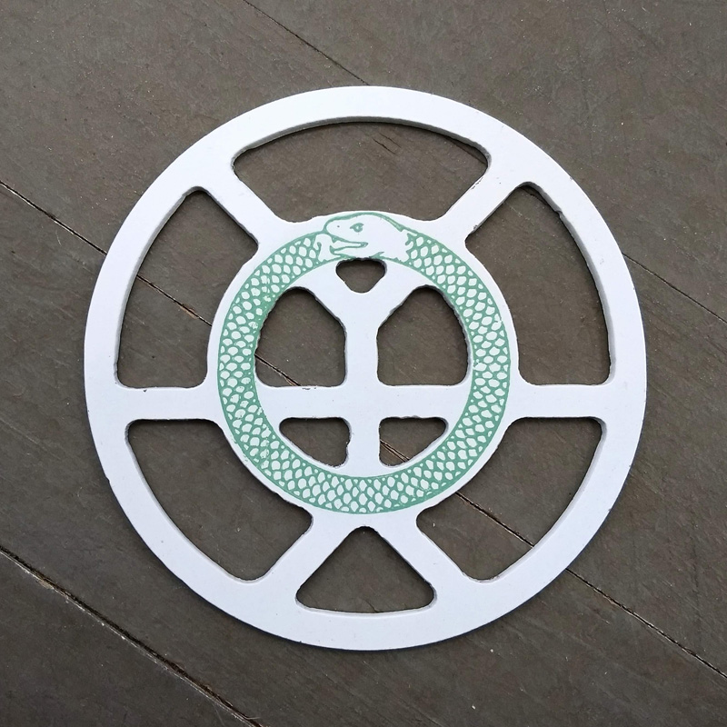 Each piece of art in this project is painted uniquely but they are all on the same 6-inch wide steel base. 2020's design is a stylized "Atl".