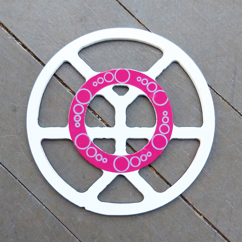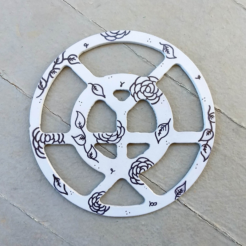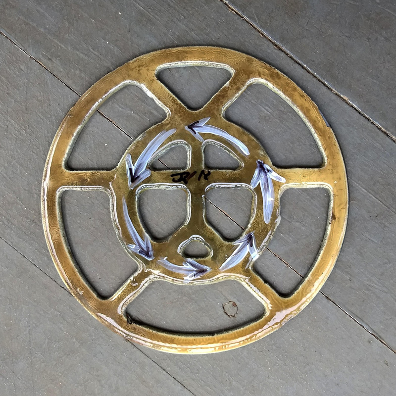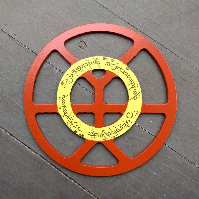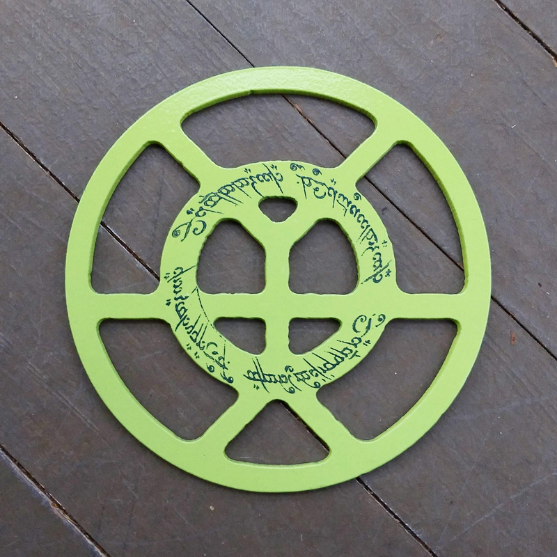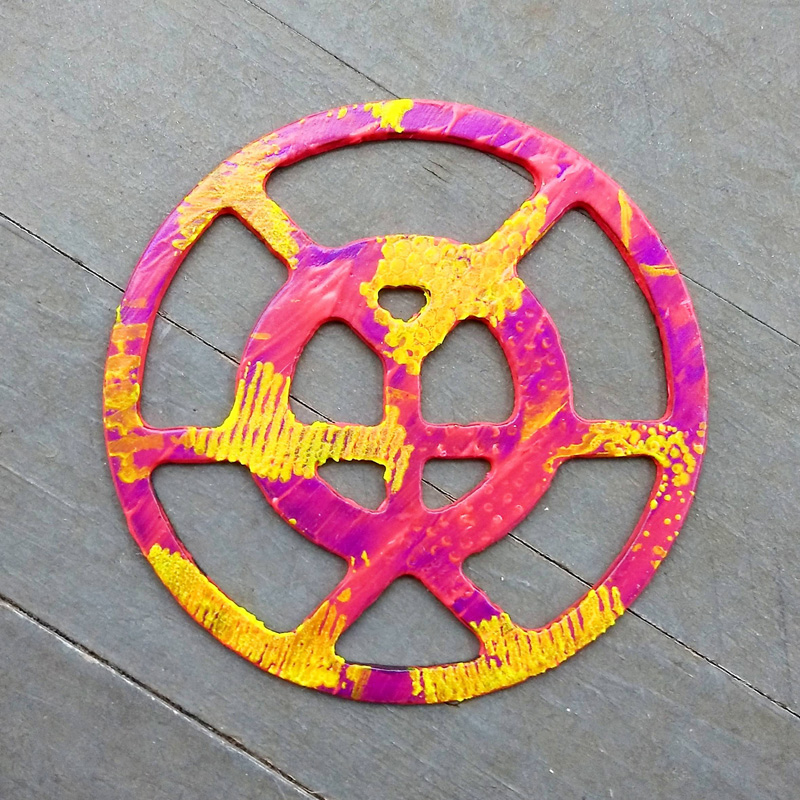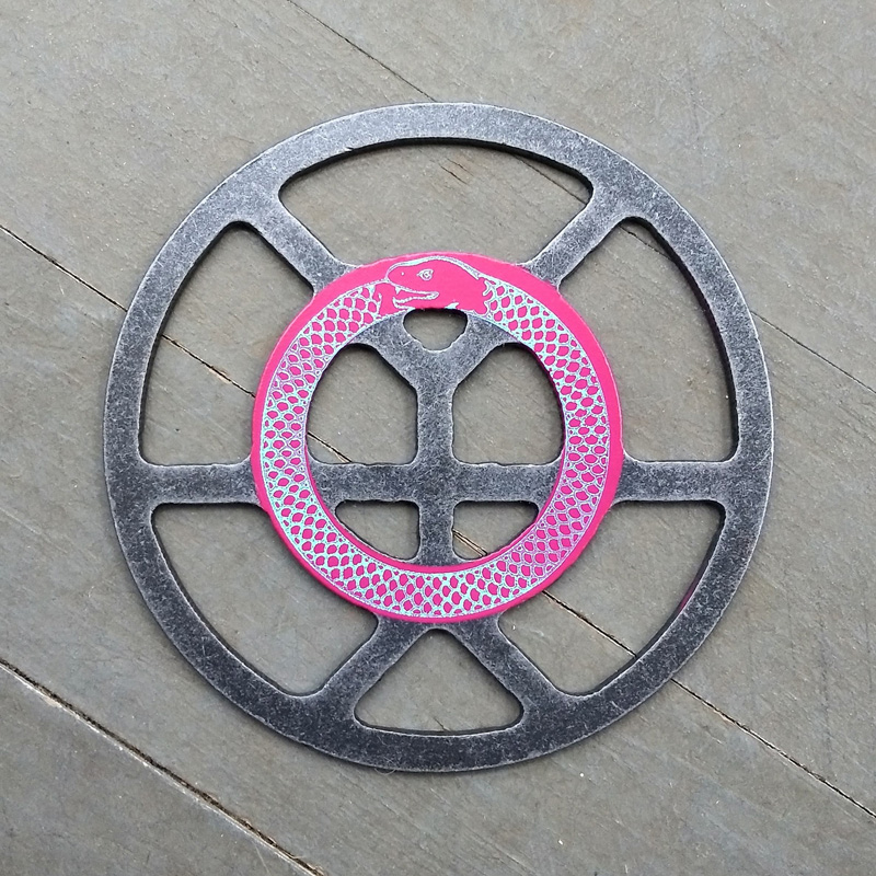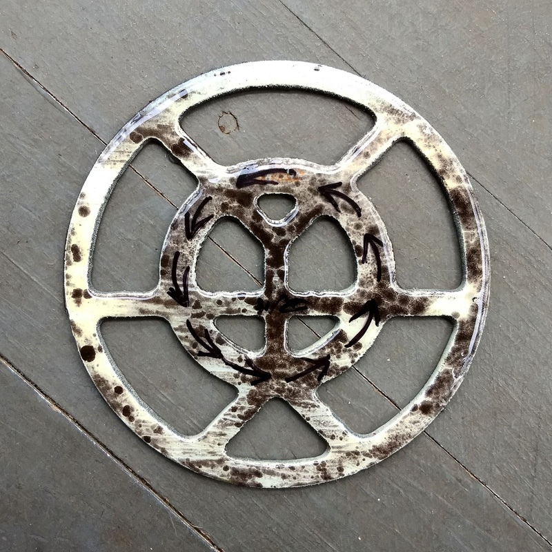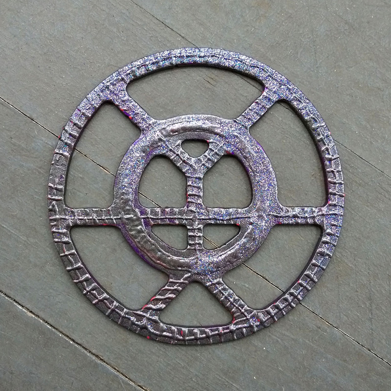 Each piece of art in this project is painted uniquely but they are all on the same 6-inch wide steel base. 2020's design is a stylized "Atl".
