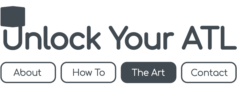 2019's design was a sylized map of Metro-Atlanta's major highways. These highways form a circle with intersecting lines. The interior circle is where the planned Beltline will be once fully connected. The 100 pieces of art made for Unlock Your ATL 2019 are documented below. |